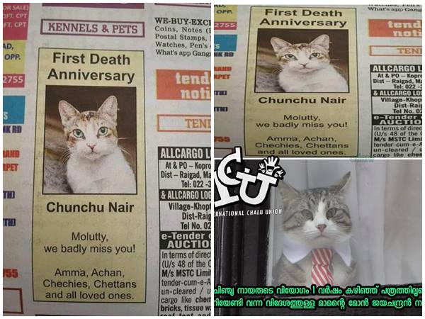 മുംബൈ/തിരുവനന്തപുരം: ടൈംസ് ഓഫ് ഇന്ത്യയുടെ മുംബൈ എഡിഷനില് വന്ന ഒരു ചരമവാര്ഷിക പരസ്യം കേരളത്തില് ഇത്രയേറെ ചര്ച്ചയാകും എന്ന് ആരും പ്രതീക്ഷിച്ച് കാണില്ല. ഒരു വളര്ത്തുപൂച്ചയുടെ ചരമവാര്ഷികം ആയിരുന്നെങ്കില് പോലും അത് ചര്ച്ചയാവില്ലായിരുന്നു. എന്നാല് പൂച്ചയുടെ പേരിനൊപ്പം 'നായര്' എന്ന ജാതിവാല് കൂടി കണ്ടതോടെയാണ് സോഷ്യല് മീഡിയ ഉണര്ന്നത്. പിന്നെ ട്രോളുകളുടെ പൊടിപൂരം ആയിരുന്നു.