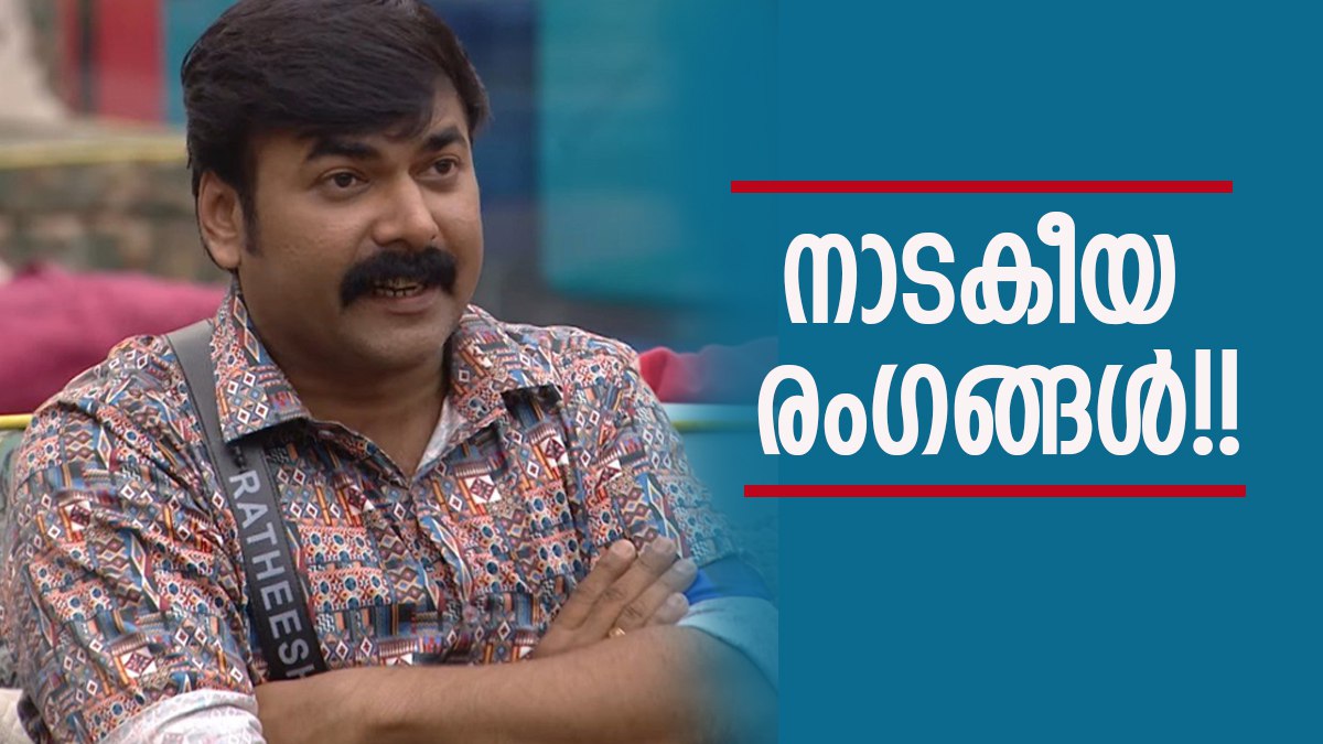 രതീഷ് ബാഗുമായി പോകുമ്പോൾ ഹൗസിലെ മറ്റ് അംഗങ്ങൾ തമ്മിൽ മറ്റ് വിഷയങ്ങൾ സംസാരിക്കുകയായിരുന്നു. വീടിന്റെ അകത്ത് നിന്നും ഇറങ്ങിയ രതീഷ് ക്യാമറയിൽ നോക്കി ബിഗ് ബോസിനോട് സംസാരിക്കുന്നുണ്ട്. വളരെ വികാരഭരിതനായിട്ടാണ് രതീഷ് സംസാരിക്കുന്നത്. 100 ദിവസം നിൽക്കണമെന്ന് ഉണ്ടായിരുന്നു. കുഴപ്പില്ല പോവുകയാണ് എന്നാണ് രതീഷ് പറഞ്ഞത്