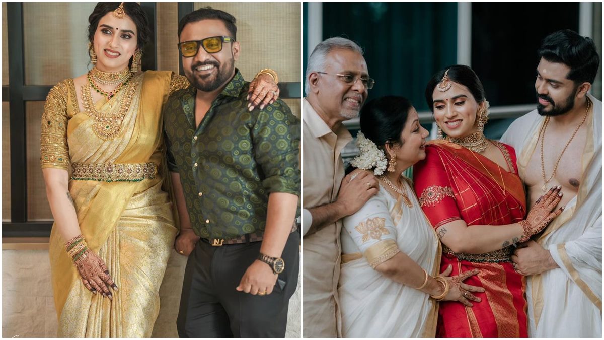 ജയറാമിന്റെ മകൾ മാളവിക ജയറാമിന്റെ വിവാഹം കഴിഞ്ഞ വെള്ളിയാഴ്ചയാണ് നടന്നത്. ഗുരുവായൂരിൽ വെച്ച് നടന്ന വിവാഹം വളരെ ലളിതമായിരുന്നു. അതേ സമയം വിവാഹ വിരുന്ന് ആഡംബരമായി തന്നെ നടന്നു. നിരവധി പ്രമുഖർ ആണ് വിവാഹ വിരുന്നിൽ പങ്കെടുത്തത്. ഇതിന്റെ വീഡിയോ സോഷ്യൽ മീഡിയയിൽ വൈറൽ ആണ്. എല്ലാവരുടേയും ശ്രദ്ധപതിഞ്ഞത് മാളവികയുടെ ലുക്കിലാണ്.