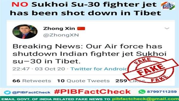 ചൈനീസ് വിദഗ്ദനായ എന്ന് അവകാശപ്പെടുന്ന സോങ്ങ് ഷിൻ എന്നയാളുടെ ട്വിറ്റർ അക്കൗണ്ടിൽ നിന്നാണ് വ്യാജ വാർത്ത പ്രചരിക്കുന്നത്. ടിബറ്റിൽ ഇന്ത്യയുടെ സുഖോയ് 30 യുദ്ധവിമാനങ്ങൾ ചൈന വെടിവെച്ചിട്ടെന്നാണ് അവകാശവാദം. എന്നാൽ ഇത്തരം വാദങ്ങളെ ഇന്ത്യ തള്ളി. അത്തരമൊരു സംഭവം നടന്നിട്ടില്ലെന്ന് ഇന്ത്യൻ സർക്കാർ അറിയിച്ചു. അതേസമയം സന്ദേശ പ്രചരിച്ച ട്വിറ്റർ അക്കൗണ്ടും വ്യാജമാണെന്ന് കണ്ടെത്തി. കാലിഫോർണിയ സർവകലാശാലയിലെ സോഷ്യോളജി പ്രൊഫസറായ വാങ് ഫെങ്ങിന്റെ ചിത്രം ഉപയോഗിച്ചാണ് അക്കൗണ്ട് തയ്യാറാക്കിയിരിക്കുന്നത്.
