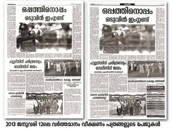 പക്ഷേ, സംഗതി അതൊന്നുമല്ല. തൊഴില് പ്രശ്നമൂലം ജീവനക്കാര് ഇടംതിരിഞ്ഞുനിന്നപ്പോള് മണിയടി വീരനായ ഒരു വിരുതന് കണ്ടെത്തിയ സൂത്രപ്പണിയാണിത്. നേരത്തെ വീക്ഷണത്തിലുണ്ടായിരുന്ന ഇയാള് അവിടെ ഒട്ടേറെ പ്രശ്നങ്ങള് സൃഷ്ടിച്ചതിനുശേഷമാണ് വര്ത്തമാനത്തിലേക്ക് കുടിയേറിയത്. പുതിയ താവളത്തിലും പഴയ ചുമതലയാണെങ്കിലും അതൊഴികെയുള്ള എല്ലാ 'കുത്തിതിരിപ്പ്' ജോലികളും ഇയാള് ഭംഗിയായി ചെയ്യുന്നുണ്ടെന്ന് ജീവനക്കാര് തന്നെ സാക്ഷ്യപ്പെടുത്തുന്നു. ജോലിക്ക് ജീവനക്കാര് ഹാജരാകില്ലെന്ന് ഉറപ്പായതോടെ വീക്ഷണത്തിലെ പേജുകളെടുത്ത് അതിനുമുകളിലുള്ള പേര് മാത്രം മാറ്റി പേജുകള് പുറത്തിറക്കാനുള്ള തൊലിക്കട്ടി കാട്ടിയ മാന്യന്മാരെ തുറന്നു കാണിക്കേണ്ടതുണ്ട്. വീക്ഷണത്തിന്റെ അതേ ഫോണ്ടില് പേജുകള് കണ്ടതോടെ സംഗതി പുറത്തായി. ഇപ്പോള് പേജുകള് മുഴുവനായും എടുക്കാതെ വാര്ത്തകളെടുത്ത് ഫോണ്ട് മാറ്റി നല്കാനുള്ള സാമാന്യബുദ്ധി കാണിക്കുന്നുണ്ട്. ഈ എളുപ്പപണി പുതിയ മാനേജ്മെന്റിനെ 'ക്ഷ' സന്തോഷിപ്പിക്കുകയും ചെയ്തു.