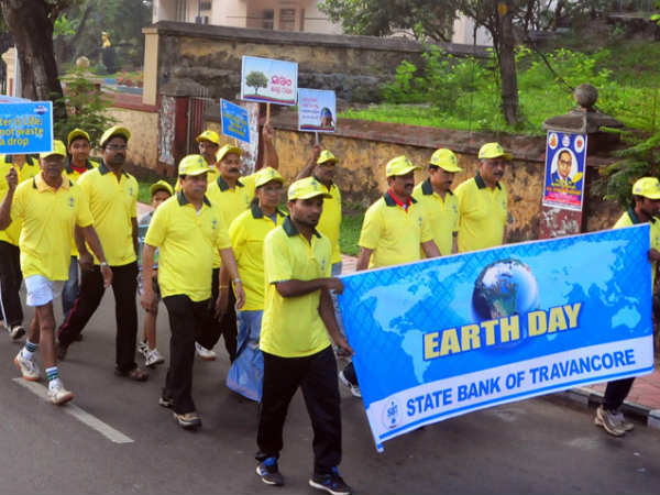 കവടിയാര് മുതല് കനകകുന്ന് കൊട്ടാരം വരെയാണ് എര്ത്ത് വാക്ക് എന്ന പേരില് കൂട്ട നടത്തം സംഘടിപ്പിച്ചത്. എസ്ബിടിയാണ് ഇത്തരമൊരു പരിപാടി സംഘടിപ്പിച്ചത്