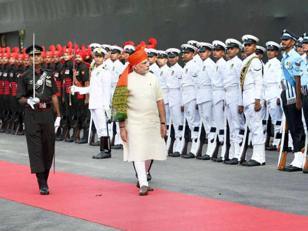 ചെങ്കോട്ടയില് സ്വാതന്ത്ര്യദിന പരേഡ് സ്വീകരിയ്ക്കുന്ന പ്രധാനമന്ത്രി നരേന്ദ്ര മോദി