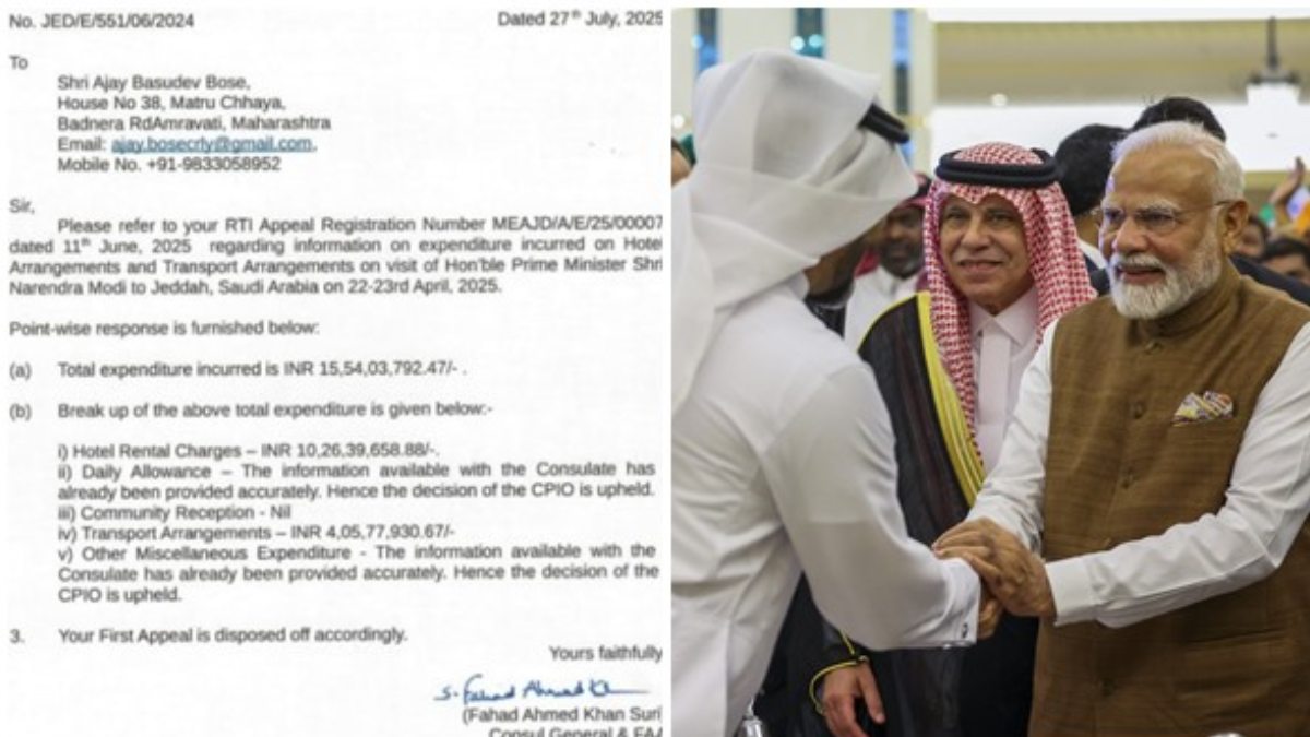 മഹാരാഷ്ട്രയിലെ പൊതുപ്രവര്ത്തകനായ അജയ് ബസുദേവ് ബോസ് ആണ് ആര്ടിഐ പ്രകാരം ജിദ്ദയിലെ ഇന്ത്യന് കോണ്സിലേറ്റ് ജനറലില് നിന്ന് ലഭിച്ച രേഖകള് പരസ്യപ്പെടുത്തിയത്. മോദിയുടെ സൗദി സന്ദര്ശനത്തിന് 15.54 കോടി രൂപയാണ് ചെലവായത് എന്ന് രേഖയില് പറയുന്നു. രേഖയിലെ വിവരങ്ങള് ബോസ് എക്സില് പങ്കുവച്ചു.