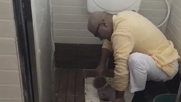 'മൂക്ക് പൊത്താതെ കയറാനാവില്ല', സ്കൂളിലെ ശുചിമുറി കൈകൊണ്ട് തേച്ചുരച്ച് കഴുകി ബിജെപി എംപി