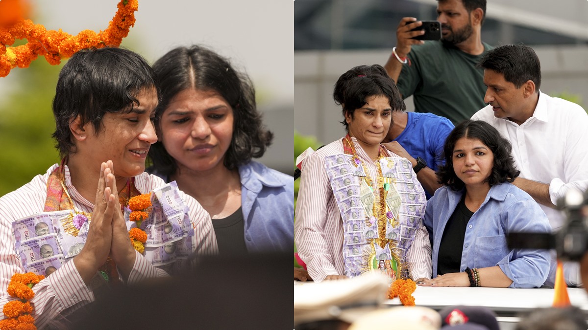 പൊട്ടിക്കരഞ്ഞ് വിനേഷ് ഫോഗട്ട്, ഡല്ഹിയില് വീരോചിത സ്വീകരണം; നോട്ടുമാല അണിയിച്ച് ആരാധകര്