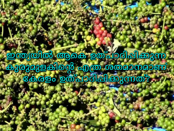 ചോദ്യം : ഇന്ത്യയിൽ ആകെ ഉത്പാദിപ്പിക്കുന്ന കുരുമുളകിന്റെ എത്ര ശതമാനമാണ് കേരളം ഉത്പാദിപ്പിക്കുന്നത്?