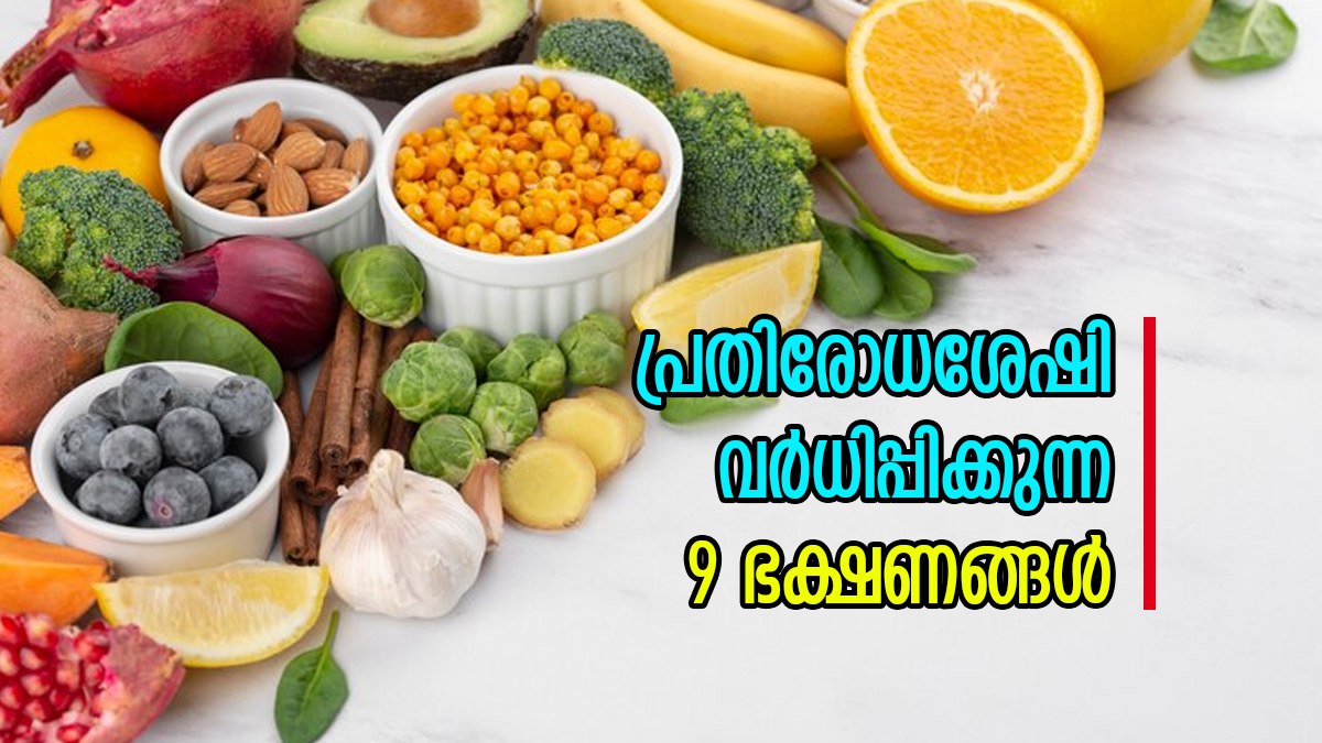 രോഗങ്ങൾ വർദ്ധിച്ച് വരുന്ന സാഹചര്യത്തിൽ പ്രതിരോധസ ശേഷി കൂട്ടുക എന്നത് വളരെ പ്രധാനപ്പെട്ട കാര്യമാണ്. നമ്മുടെ ഭക്ഷണ ക്രമത്തിൽ ചില ഭക്ഷണങ്ങൾ ഉൾപ്പെടുത്തുന്നത് പ്രതിരോധ ശേഷി വർദ്ധിപ്പാക്കാൻ സഹായിക്കുന്നതാണ്. പ്രതിരോധ ശേഷി വർദ്ധിപ്പാക്കാൻ സഹായിക്കുന്ന 9 ഭക്ഷണ സാധനങ്ങളാണ് ഇവിടെ പറയുന്നത്.