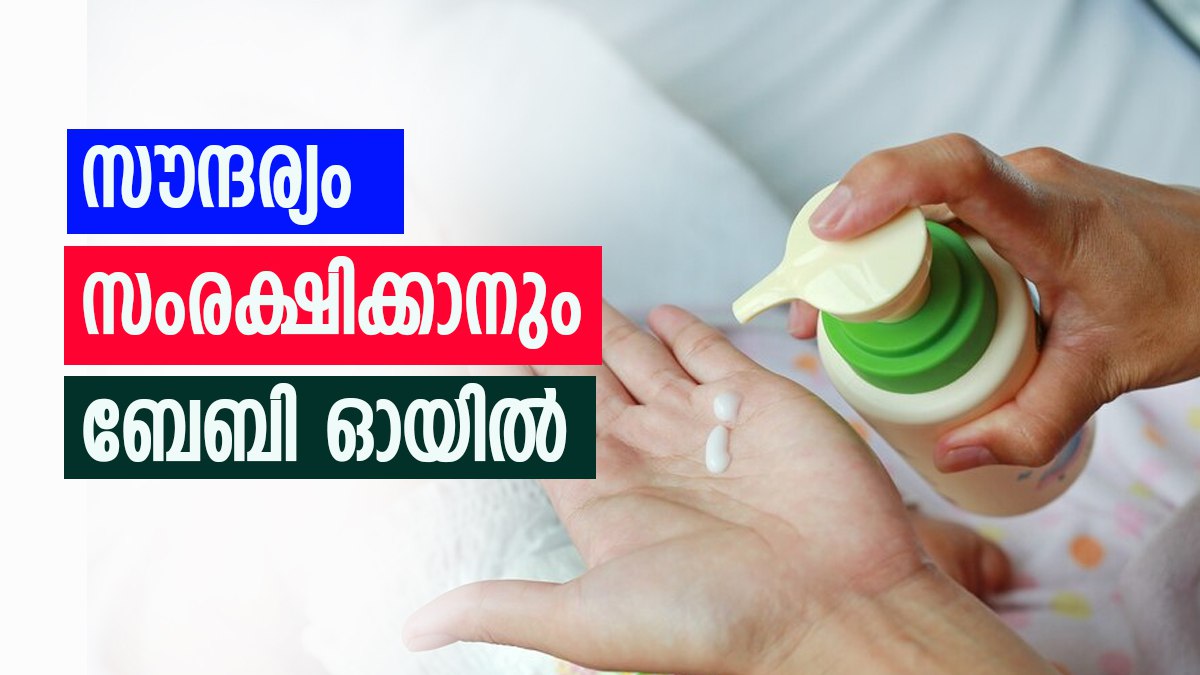 1. മോയ്സ്ചറൈസർ: ബേബി ഓയിൽ ഒരു മോയ്സ്ചറൈസറായി നിങ്ങൾക്ക് ഉപയോഗിക്കാവുന്നതാണ്. വരണ്ട ചർമ്മം മൃദുലം ആക്കാൻ സഹായിക്കുന്നതാണ്. കുഞ്ഞുങ്ങൾക്ക് ഉപയോഗിക്കുന്നത് പോലെ തന്നെ നിങ്ങൾക്കും പ്രയോഗിക്കാം. ബേബി ഓയിൽ ഉപയോഗിക്കുമ്പോൾ നമ്മുടെ ശരീരത്തിന് ജലാംശം ലഭിക്കും.