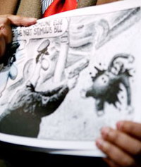 ഈ രണ്ടുകാര്യങ്ങളും ബന്ധിപ്പിച്ചുകൊണ്ടാണ് കാര്ട്ടൂണ് വരച്ചിരിക്കുന്നത്. ഒരു പൊലീസ് ഓഫീസര് ചിമ്പന്സിയെ വെടിവച്ചുകൊന്ന സഹപ്രവര്ത്തകനോട് അടുത്ത ഉത്തേജക പാക്കേജില് ഒപ്പിടാന് അവര്ക്ക് മറ്റാരെയെങ്കിലും കണ്ടുപിടിക്കേണ്ടിവരും എന്ന് പറയുന്നതാണ് കാര്ട്ടൂണ്.