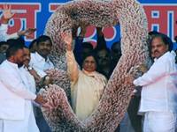 മാര്ച്ച് 15 ന് ബിഎസ്പിയുടെ ഇരുപത്തിയഞ്ചാം വാര്ഷികത്തോട് അനുബന്ധിച്ച് നടത്തിയ റാലിയില് ആയിരത്തിന്റെ നോട്ടുകള് കൊരുത്ത മാല മായാവതിയെ അണിയിച്ചതാണ് വിവാദമായത്. ഇതിനെതിരെ ഉയര്ന്ന വിമര്ശനങ്ങള്ക്ക് 18 ലക്ഷത്തിന്റെ മറ്റൊരു മാല മായവതിയെ അണിയിച്ചാണ് ബിഎസ്പി മറുപടി നല്കിയത്.