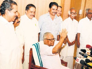 മന്ത്രിമാര്ക്കു മുന്നിലായി ഫൊട്ടോഗ്രഫര്മാര്ക്കു വേണ്ടി പ്രത്യേക സ്റ്റൈലില് കൈകൂപ്പി പോസ് ചെയ്യാനും വി.എസ്. തയാറായി. മുഖ്യമന്ത്രിയും മന്ത്രിമാരും ഒരു മേശയ്ക്കു ചുറ്റുമിരുന്നാണു ഭക്ഷണം കഴിച്ചത്. സൂപ്പോടെ തുടക്കം. സഹായി സുരേഷ് വി.എസിനു കറികള് വിളമ്പി. മുഖ്യമന്ത്രി ആസ്വദിച്ചു കഴിച്ചുവെങ്കിലും മന്ത്രിമാരുടെ മുഖത്ത് വിടപറയലിന്റെ നേരിയ സങ്കടം പ്രകടമായിരുന്നു. ഒടുവില് പായസം കൂടി ചോദിച്ചു വാങ്ങിക്കഴിച്ച ശേഷം മന്ത്രിമാരോടു യാത്ര പറഞ്ഞു വി.എസ്. ഇറങ്ങി.