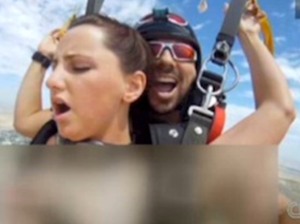 അശ്ലീല സിനിമാ നടനും സ്ക്കൈ ഡൈവിങ് പരിശീലകനുമായ അലക്സ് ടോറസിന്റെ ബ്ലോഗില് പ്രത്യക്ഷപ്പെട്ട വീഡിയോയാണ് വിവാദത്തിലകപ്പെട്ടത്. കാലിഫോര്ണിയ നഗരത്തിന് മുകളില് പാരച്യൂട്ടില് പറന്നിറങ്ങുന്നതിനിടെ അലക്സും ഒരു സ്ത്രീയും ലൈംഗിക ബന്ധത്തിലേര്പ്പെടുന്ന രംഗങ്ങളാണ ്വീഡിയോയിലുള്ളതെന്ന് ഡെയ്ലി മെയില് റിപ്പോര്ട്ട് ചെയ്യുന്നു.