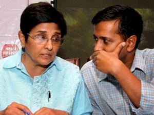 ബേദിയ്ക്കും കെജ്രിവാളിനും നേരെ ചെരുപ്പെറിഞ്ഞു