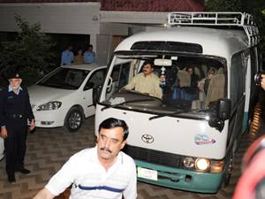 വെള്ളിയാഴ്ച രാവിലെ കനത്ത സുരക്ഷാക്രമീകരണങ്ങളോടെ ജയില് നിന്നും മിനി ബസിലാണ് ഇവരെ ബനസീര് ഭൂട്ടോ വിമാനത്താവളത്തില് എത്തിച്ചത്. മാധ്യമപ്രവര്ത്തകര് ജയിലിന് പുറത്തുകാത്തുനിന്നുവെങ്കിലും ഇവരെ പ്രത്യേക മറയുണ്ടാക്കിയാണ് ബസിനുള്ളിലേയ്ക്കു കയറ്റിയത്. അതേസമയം, ലാദന്റെ വിധവകളുടെ താത്പര്യപ്രകാരമാണ് ഇവരെ സൗദിയിലേയ്ക്കു അയക്കുന്നതെന്ന് പോലീസ് അറിയിച്ചു.