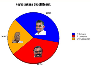 വോട്ടെണ്ണലിന്റെ പ്രാരംഭ ഘട്ടങ്ങളില് ബിജെപി സ്ഥാനാര്ഥിയ്ക്കും പിന്നിലായി മൂന്നാം സ്ഥാനത്ത് നിന്നിരുന്ന ശെല്വരാജ് പിന്നീട് കനത്ത മുന്നേറ്റം നടത്തുകയായിരുന്നു.