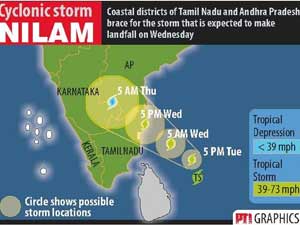 നീലം ചുഴലിക്കാറ്റ് തീര പ്രദേശങ്ങളില് എത്തിയതിന്റെ ഫലമായി തമിവ്നാട്ടിലും ആന്ധ്രയിലും ശക്തമായ കാറ്റിനൊപ്പം മഴയും അനുഭവപ്പെടുന്നുണ്ട്. പലയിടങ്ങളിലും മരങ്ങള് കടപുഴകി വീണു എന്നും കെട്ടിടങ്ങള് ഇടിഞ്ഞു വീണു എന്നും ആണ് റിപ്പോര്ട്ട്.