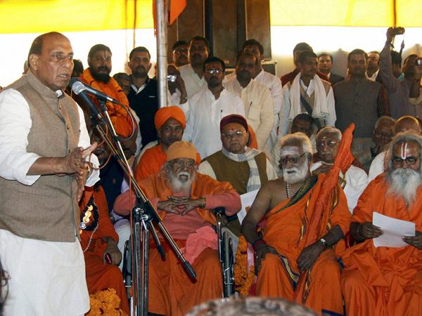 അലഹാബാദില് വിശ്വഹിന്ദുപരിഷത്തിന്റെ കേന്ദ്ര ഉപദേശകസമിതി യോഗത്തില് പങ്കെടുക്കാനെത്തിയതായിരുന്നു രാജ്നാഥ് സിങ്. അഷോക് സിംഗാള്, പ്രവീണ് തൊഗാഡിയ, യോഗി ആദിനാഥ്, ലക്ഷ്മികാന്ത് വാജ്പേയ് എന്നീ മുതിര്ന്ന വിഎച്ച്പി നേതാക്കളുമായി രാജ്നാഥ് സിങ് ചര്ച്ച നടത്തുന്നുണ്ട്.