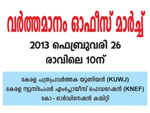 കഴിഞ്ഞ ജനുവരി പത്തു മുതല് ആരംഭിച്ച സമരം കേരള പത്രപ്രവര്ത്തക യൂണിയന് ഏറ്റെടുത്തിരിക്കുകയാണ്. പ്രക്ഷോഭ പരിപാടികളുടെ ആദ്യ പടിയായി ഈമാസം 26ന് വര്ത്തമാനം ഓഫീസിലേക്ക് മാര്ച്ച് നടക്കും. കേരളത്തിലെ എല്ലാ പ്രസ്ക്ലബ്ബുകളിലെയും വര്ത്തമാനം ബോക്സുകള് ബ്ലോക്ക് ചെയ്യാന് ഇന്നലെ മലപ്പുറത്തു ചേര്ന്ന കേരള പത്രപ്രവര്ത്തക യൂണിയന് സംസ്ഥാന കമ്മിറ്റി തീരുമാനിച്ചിട്ടുണ്ട്. പ്രശ്നത്തിന് ശാശ്വത പരിഹാരമുണ്ടാകുംവരെ വര്ത്തമാനം പ്രതിനിധികളെ പത്രസമ്മേളനങ്ങളില് പങ്കെടുപ്പിക്കേണ്ടതില്ലെന്നതടക്കമുള്ള തീരുമാനങ്ങളും നേതൃത്വം സ്വീകരിച്ചിട്ടുണ്ട്.
