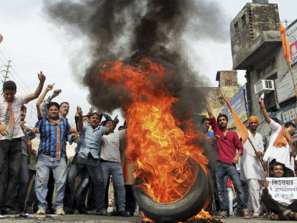 വര്ഗ്ഗീയ സംഘര്ഷത്തില് പ്രതിഷേധിച്ച് ബിജെപി പ്രവര്ത്തകര് നടത്തിയ പ്രകടത്തിനൊടുവില് ടയറിന് തീയിട്ടിരിക്കുന്നു.