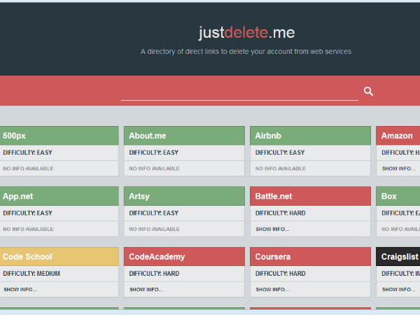ജസ്റ്റ് ഡിലീറ്റ് ഡോട്ട് മി(JustDelete.me) എന്നാണ് വെബ്സൈറ്റിന്റെ പേര്. യുആര്എല്ലുകളുടെ ഒരു ഡയറക്ടറി തന്നെയാണ് ഈ സൈറ്റ്. നാം ആവശ്യപ്പെടുന്ന പക്ഷം നമ്മുടെ അക്കൗണ്ട് യുആര്എല് തന്നെ ഡിലീറ്റ് ചെയ്യപ്പെടും.