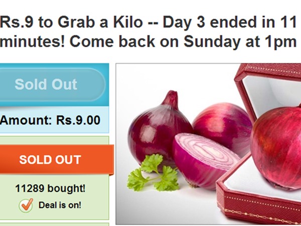 രാജ്യത്ത് 78 നഗരങ്ങളില് ഈ ഓഫര് ലഭ്യമാണത്രെ. ഓണ്ലൈനില് ഓര്ഡര് ചെയ്താല് 10 ദിവസത്തിനകം ഉള്ളി വീട്ടിലെത്തും. ഒരാഴ്ച കൊണ്ട് 21000 കിലോ ഉള്ളി വിറ്റഴിക്കാനാണ് വെബ്സൈറ്റ് ലക്ഷ്യമിടുന്നത് എന്നാണ് റിപ്പോര്ട്ട്. ദില്ലിയിലുള്ള ഹോള്സെയില് കേന്ദ്രങ്ങളുടെ സഹായത്തോടെയാണ് ഗ്രൂപ്പോണിന്റെ ഉള്ളിവ്യാപാരം എന്നാണ് റിപ്പോര്ട്ട്.