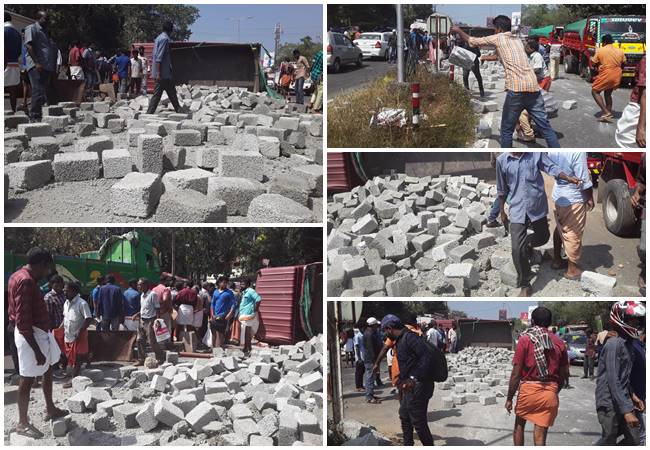 കോൺക്രീറ്റ് കട്ടകളുമായി പോയ ലോറി മറിഞ്ഞു: റോഡില് ഗതാഗത തടസ്സം, അപകടം ആലപ്പുഴയില്!!