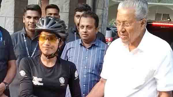 സ്ത്രീ സുരക്ഷയ്ക്കായി സൈക്കിളില് തനിയെ ഇന്ത്യ ചുറ്റുന്ന ആശ മാല്വിയ മുഖ്യമന്ത്രിയെ കണ്ടു
