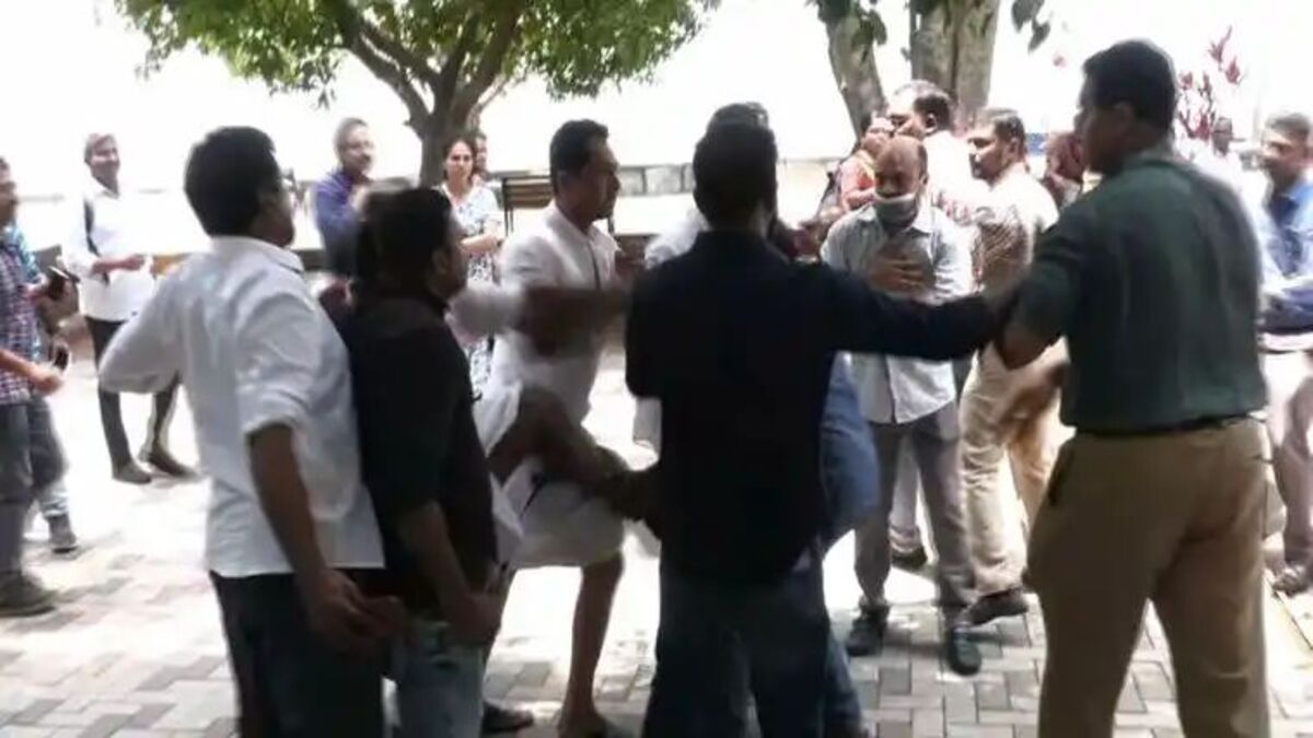 പ്രവര്ത്തകര് തന്റെ നേരെ ഓടിയെത്തുന്നത് കണ്ട ഇയാള് ബസില് കയറി രക്ഷപ്പെടാന് ശ്രമിക്കുകയായിരുന്നു. പ്രതിഷേധക്കാര് ഇയാളെ പിന്നില് നിന്ന് ചവിട്ടി. ഇയാള്ക്ക് നേരെ കുപ്പിയും വലിച്ചെറിഞ്ഞു.
