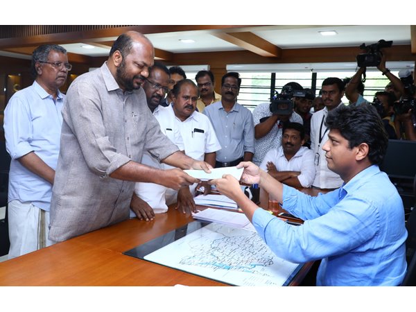 രാജീവ് സമര്പ്പിച്ച നാമനിര്ദേശത്തിലാണ് ഇക്കാര്യങ്ങള് ചൂണ്ടിക്കാട്ടിയിരിക്കുന്നത്. മുഖ്യവരണാധികാരിയായ ജില്ലാ കളക്ടര് മുഹമ്മദ് വൈ. സഫീറുള്ള മുമ്പാകെ എം.എല്.എമാരായ എസ്. ശര്മ, ജോണ് ഫെര്ണാണ്ടസ്, കെ.ജെ മാക്സി എന്നിവര് പി. രാജീവിനെ നാമനിര്ദേശം ചെയ്യുന്ന മൂന്നു സെറ്റ് പത്രികകളാണ് സമര്പ്പിച്ചത്. കെട്ടിവെക്കുന്നതിനുള്ള 25,000 രൂപ പ്രശസ്ത കഥാകൃത്ത് ടി. പത്മനാഭനാണ് നല്കിയത്. തിരഞ്ഞെടുപ്പ് കമ്മറ്റി ചെയര്മാന് സി.എം. ദിനേശ്മണി, കണ്വീനര് പി. രാജു, സി.പി.എം ജില്ലാ സെക്രട്ടറി സി.എന്. മോഹനന്, എസ്.ശര്മ്മ എം.എല്.എ എന്നിവര് ഒപ്പമുണ്ടായിരുന്നു.