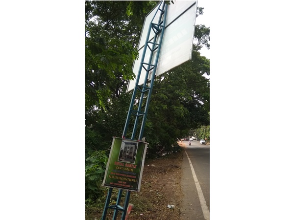 പരസ്യത്തിന് വേണ്ടി നിർമ്മിച്ച കൂറ്റൻ ടവറുകൾ ഭീഷണിയാകുന്നു; നാട്ടുകാർക്ക് ദുരിതം, ടവർ ചരിഞ്ഞ് റോഡിലേ