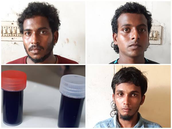 എറണാകുളം മുളവ് കാട് സ്വദേശികളും സഹോദരൻമാരുമായ ഷാരൂൺ (23),ശരത്ത് (22), എന്നിവരും മുളവ്കാട് സ്വദേശി തന്നെയായ പ്രണവ് (20) എന്നിവർ ആണ് കണ്ടെയ്നർ ടെർമിനലിനു സമീപത്ത് നിന്നും പോലീസ് പിടിയിലായത്.ബാഗ്ലൂരെ ബൊമ്മനഹള്ളിയിൽ നിന്നും എത്തിയ ഇവരിൽ നിന്നും അഞ്ച് ഗ്രാം വീതമാക്കി പായ്ക്ക് ചെയ്യ്ത നിരവധി ബോട്ടിൽ ഹാഷിഷ് കണ്ടെടുത്തു. ബാഗ്ലൂര് നിന്നും ഗോവയിൽ നിന്നും നഗരത്തിലേക്ക് ലഹരി വസ്തുക്കൾ എത്തിക്കുന്ന സംഘത്തിലെ മുഖ്യകണ്ണികളാണ് പിടിയിലായവർ.