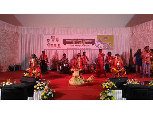 ചെറുതോണി: ക്ഷേത്രപ്രവേശന വിളംബരത്തിന്റെ 82-ാം വാര്ഷികാഘോഷങ്ങളുടെ ഭാഗമായി ചെറുതോണിയിലാണ് കലാസന്ധ്യ അരങ്ങേറിയത്. നാടന്പാട്ടിന്റെ ഈണവും താളവും ഒപ്പം കേരളത്തിന്റെ തനത് കലാരൂപങ്ങളുടെ പുനരവീഷ്കാരവും ഒത്തുചേര്ന്ന കലാസദസ്സ് വേറിട്ട അനുഭവം ഒരുക്കി. കേരളത്തിന്റെ പരമ്പരാഗത കലാരൂപങ്ങളായ കരിങ്കാളി,തെയ്യം,കരകാട്ടം,മയിലാട്ടം,വേലകളി തുടങ്ങിയവ അരങ്ങിലെത്തി.