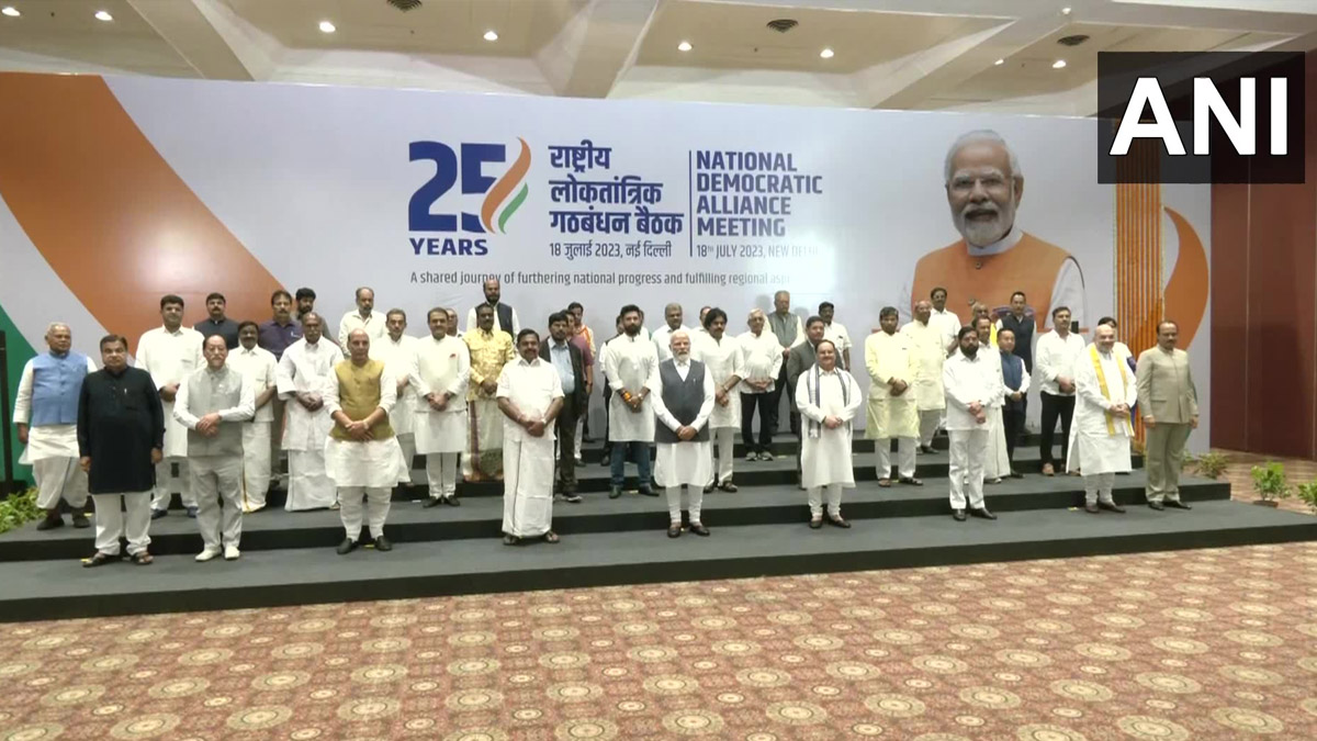 ന്യൂദല്ഹി: 'ഇന്ത്യ' എന്ന പേര് പ്രഖ്യാപനത്തോടെ അവസാനിച്ച പ്രതിപക്ഷത്തിന്റെ മഹായോഗത്തിന് പിന്നാലെ 38 പാര്ട്ടികളുടെ ശക്തിപ്രകടനവുമായി എന് ഡി എ യോഗം. പ്രധാനമന്ത്രി നരേന്ദ്ര മോദി അടക്കമുള്ളവര് പങ്കെടുത്ത എന് ഡി എ യോഗത്തോടെ ഒരു വര്ഷം മാത്രം ശേഷിക്കുന്ന ലോക്സഭാ തിരഞ്ഞെടുപ്പിന് രാജ്യമൊരുങ്ങുകയാണ് എന്ന സൂചനയാണ് ദേശീയ രാഷ്ട്രീയത്തിന് ഈ ദിവസം സമ്മാനിക്കുന്നത്.
