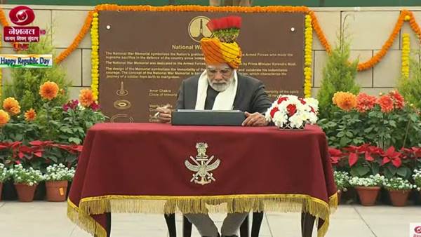 #RepublicDay | PM Modi leads the nation in paying homage to the fallen soldiers at the National War Memorial in Delhi pic.twitter.com/CE9B2CPZmB
