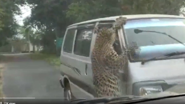 അസമിലെ ജോർഹട്ടിൽ ഒരു വീടിന്റെ പരിസരത്ത് നിന്ന് പുള്ളിപ്പുലി വാനിലേക്ക് ചാടുന്നതാണ് വീഡിയോയിൽ ഉള്ളത്. വാനിനെ ആക്രമിക്കാനുള്ള ശ്രമം പരാജയപ്പെട്ടതിനെ തുടർന്ന് ഇടുങ്ങിയ റോഡിലേക്ക് പാഞ്ഞുകയറുകയായിരുന്നു. സംഭവം ഷൂട്ട് ചെയ്യുന്നതിനിടെ മറ്റൊരു വാഹനത്തിനുള്ളിൽ ഇരുന്ന ഉദ്യോഗസ്ഥൻ അതിനെ പിന്തുടർന്നു.