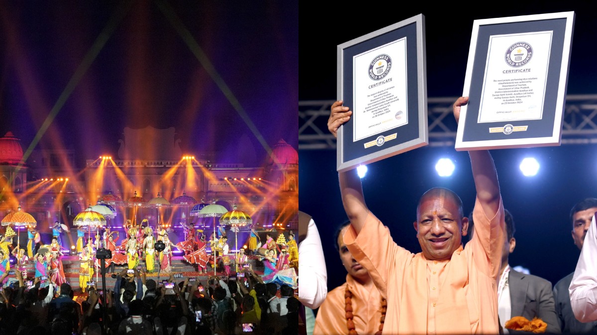 നഗരം മുഴുവൻ നിറങ്ങളിൽ മുങ്ങിയ കാഴ്ചയായിരുന്നു കാണാൻ കഴിഞ്ഞത്. ഇതിനിടയിൽ ചരിത്രം കുറിച്ചുകൊണ്ട് രണ്ട് ഗിന്നസ് റെക്കോർഡുകളും ഇന്നത്തെ ദിനം അയോധ്യയുടെ പേരിൽ എഴുതി ചേർക്കപ്പെട്ടു. ഉത്തർപ്രദേശ് ടൂറിസം വകുപ്പും അയോധ്യ ജില്ലാ ഭരണകൂടവും ഒരുമിച്ച് നിന്ന് നടത്തിയ ആഘോഷ പരിപാടികൾക്കാണ് രണ്ട് ഗിന്നസ് ലോക റെക്കോർഡുകൾ നേടാനായത്.