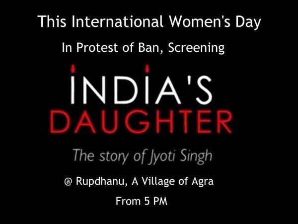 ആഗ്ര: കോടതി വിലക്കിയിട്ടും ഇന്ത്യാസ് ഡോട്ടര് ഒരു ഗ്രാമം മുഴുവന് കണ്ടു. ആഗ്രയിലെ രൂപ്ദന് ഗ്രാമത്തിലാണ് ഇന്ത്യാസ് ഡോട്ടര് പ്രദര്ശിപ്പിച്ചത്. അന്തര്ദേശീയ വനിതാ ദിനത്തില് സാമൂഹ്യ പ്രവര്ത്തകന് കേതന് ദിക്ഷിതാണ് ഇന്ത്യാസ് ഡോട്ടര് പ്രദര്ശിപ്പിക്കാന് നേതൃത്വം നല്കിയത്.