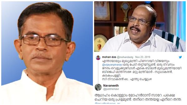 ബിജെപി മന്ത്രിസഭയിൽ ജി സുധാകരൻ മന്ത്രി, ടിജി മോഹൻദാസിന് ചുട്ട മറുപടി നൽകി മന്ത്രിയുടെ മകൻ!