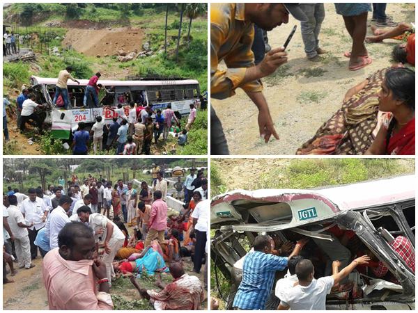 ആഞ്ജനേയ സ്വാമി ക്ഷേത്രം സ്ഥിതി ചെയ്യുന്ന കൊണ്ടഗട്ടു തെലങ്കാനയിലെ അറിയപ്പെടുന്ന തീര്ത്ഥാടന കേന്ദ്രമാണ്. ക്ഷേത്രം സന്ദര്ശിച്ച ശേഷം ബസ്സില് മടങ്ങി വരുന്നവരാണ് അപകടത്തില്പ്പെട്ടതെന്നാണ് സൂചന. പോലീസ് ഉദ്യോഗസ്ഥരും ജില്ലാ ഭരണാധികാരികളും അപകടസ്ഥലത്ത് എത്തിയിട്ടുണ്ട്. രാവിലെ 11.45ഓടെയാണ് ബസ്സപകടമുണ്ടായത്. പത്തോളം പേര് അപകടസ്ഥലത്ത് തന്നെ മരിച്ചതായാണ് റിപ്പോര്ട്ട്.