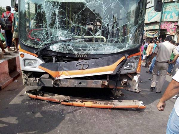 ദില്ലി റെയില്വേ സ്റ്റേഷനില് നിന്നും അബേദ്ക്കര് നഗറിലേക്കു വരുന്ന 419 നമ്പര് ബസ്സാണ് ഇടിച്ചത്. യാത്രക്കിടെ ഡ്രൈവര് വാജിദ് അലിക്ക(40) അസ്വസ്ഥത അനുഭവപ്പെട്ടതിനെ തുടര്ന്ന് അബന്ധത്തില് ആക്സിലറേറ്ററില് ചവിട്ടിയതാണ് ബസ്സ് നിയന്ത്രണം വിടാന് കാരണമായത്.