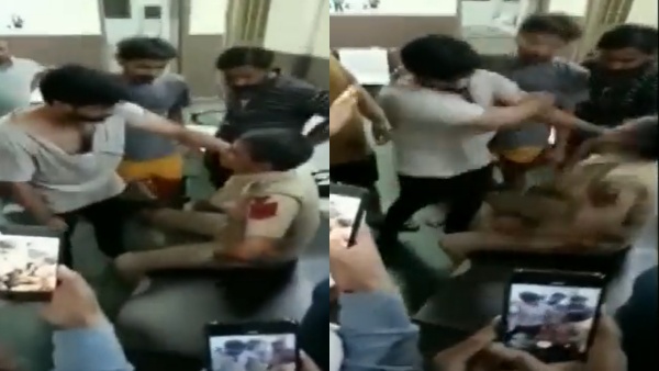 സ്റ്റേഷനിൽ കയറി പോലീസുകാരനെ പൊതിരെ തല്ലി ഗുണ്ടകള്; ഇടപെടാതെ ദൃശ്യങ്ങളെടുത്ത് സഹപ്രവര്ത്തകര്