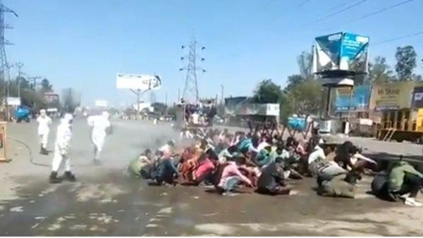 ഷോക്കിങ് വീഡിയോ!! യുപിയില് തിരിച്ചെത്തിയ തൊഴിലാളികളെ അണുവിമുക്തമാക്കുന്നത് ഇങ്ങനെ