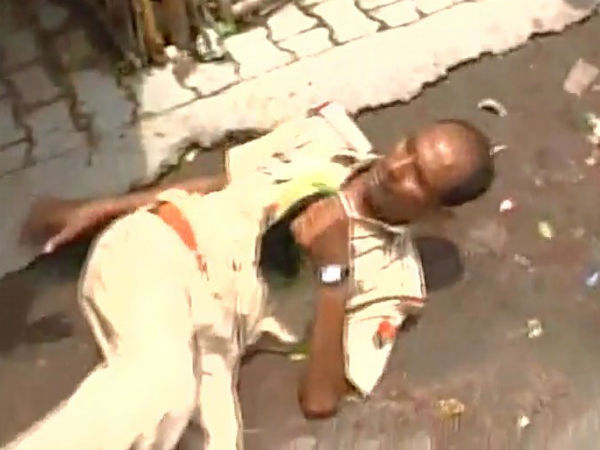 എഴുനേറ്റ് നില്കാന്പോലും ആകാതെ പോലീസുകാരന് തറയില് കിടക്കുകയായിരുന്നു. എഴുനേല്ക്കാന് ശ്രമിക്കുമ്പോഴൊക്കെ ഇയാള് റോഡിലെ ചെളിയിലേക്ക് വീഴുന്നതായി കാണാം. അവസാനം ഒരു ബൈക്കില് പിടിച്ചാണ് എഴുനേറ്റത്.