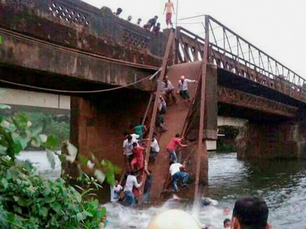 ഗോവയില് പാലം തകര്ന്ന് കാണാതായവരെ മുതലകള് പിടിച്ചതായി സംശയം