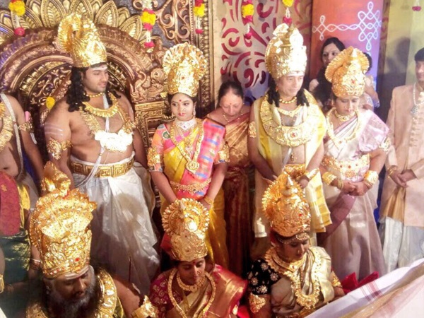 വധുവും വരനും മാത്രമായിരുന്നു ഈ വേഷം കെട്ടല് എങ്കില് ക്ഷമിക്കാമായിരുന്നു. എന്നാലിവിടെ വധൂവരന്മാരുടെ അച്ഛനമമ്മമാരും ബന്ധുക്കളും എന്തിന് അതിഥികള് പോലും പുരാണ കഥാപാത്രങ്ങളെ പോലെയാണ് എത്തിയത്.