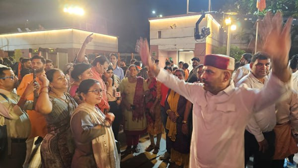 ഹരിയാന, ജമ്മു കശ്മീർ നിയമസഭാ തിരഞ്ഞെടുപ്പുകളുടെ വോട്ടെണ്ണൽ പുരോഗമിക്കവേ കോൺഗ്രസ് പ്രവർത്തകൻ ജഗദീഷ് ശർമ്മയും മറ്റ് പാർട്ടി പ്രവർത്തകരും കോൺഗ്രസ് ഓഫീസിന് പുറത്ത് മധുരപലഹാരങ്ങൾ വിതരണം ചെയ്യുന്നു.
