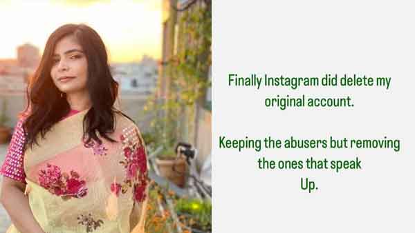'അവസാനം ഇന്സ്റ്റഗ്രാം എന്റെ യഥാര്ത്ഥ അക്കൗണ്ട് നീക്കം ചെയ്തു. അധിക്ഷേപിക്കുന്നവരെ നിലനിര്ത്തിക്കൊണ്ട് ശബ്ദമുയര്ത്തുന്നവരെ ഒഴിവാക്കുന്നു, എന്നാണ് ചിന്മയി ശ്രീപദ തന്റെ ബാക്ക് അപ്പ് ഇന്സ്റ്റഗ്രാം അക്കൗണ്ടില് കുറിച്ചത്. പുരുഷന്മാര് തങ്ങളുടെ ലിംഗത്തിന്റെ ചിത്രങ്ങള് ഡി എമ്മുകളില് അയക്കുന്നത് പരാതിപ്പെട്ടതിനാണ് തന്റെ അക്കൗണ്ട് ഇന്സ്റ്റഗ്രാം നീക്കം ചെയ്തത് എന്ന് അവര് ആരോപിച്ചു.