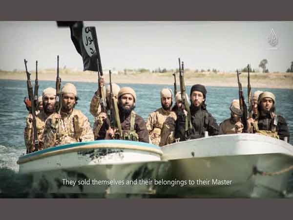 ഇസ്ലാമിക് സ്റ്റേറ്റിന്റെ പതാകയും എന്തി തോക്കും പിടിച്ച് സൈനിക വേഷത്തില് ഒരു ബോട്ടില് ഇരിയ്ക്കുന്ന 11 പേരുടെ ചിത്രങ്ങളാണ് ട്വിറ്റര് വഴി പുറത്ത് വിട്ടിരിയ്ക്കുന്നത്.