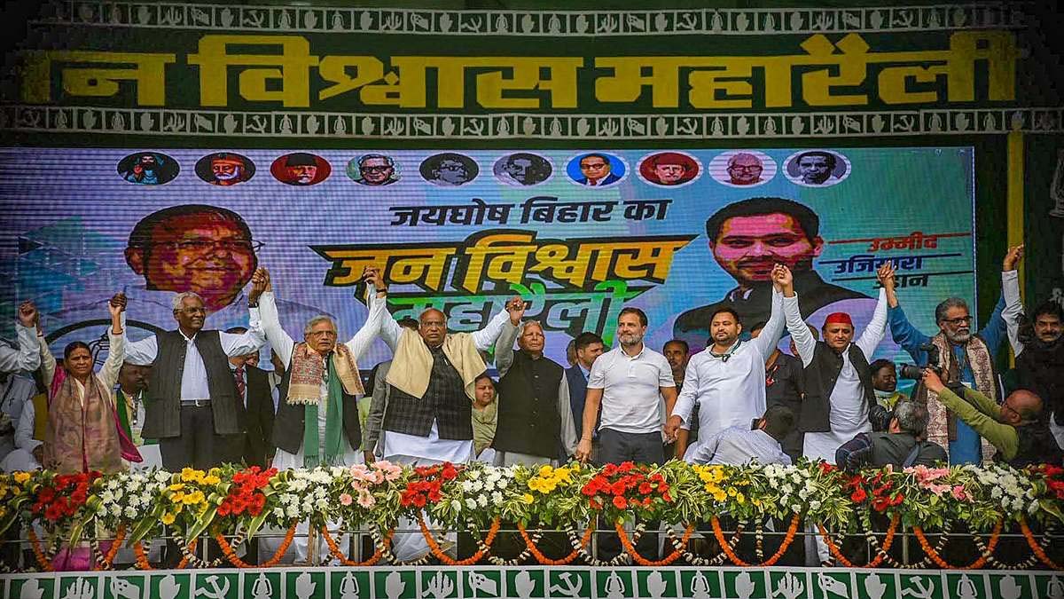 നരേന്ദ്ര മോദി ഇന്ത്യയില് വിദ്വേഷം പ്രചരിപ്പിക്കുകയാണെന്നും അദ്ദേഹം കൂട്ടിച്ചേര്ത്തു. ബീഹാര് ഒരുപാട് മഹത് വ്യക്തികളെ നല്കിയിട്ടുണ്ട് എന്നും അദ്ദേഹം ചൂണ്ടിക്കാട്ടി. 'ബിഹാറിലെ ജനക്പൂരില് ദശരഥന് രാജാവിന്റെ മകന് ശ്രീരാമന് വിവാഹിതനായി. ബിഹാറില് ധീരരായ നിരവധി പുരുഷന്മാര് ജനിച്ചു. ഈ ഗാന്ധി മൈതാനത്ത് നിരവധി തവണ, രാജ്യത്തുടനീളമുള്ള നേതാക്കളുമായി കൂടിക്കാഴ്ചകള് നടത്തി,' അദ്ദേഹം പറഞ്ഞു.